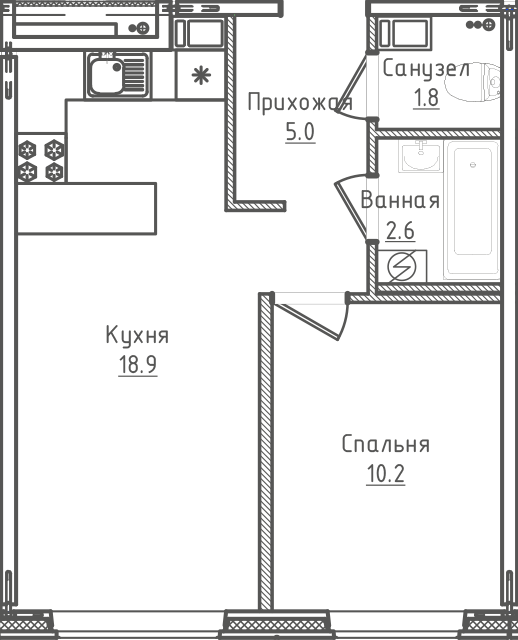 1-комн. 38,50 м2